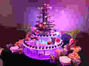 We offer various packages to suit every budget and taste. Our chocolate fountains are unique in that our chocolate actually flows down the tiers. Imagine a waterfall cascading down a cliff, and you have an idea of how our chocolate fountain looks. We can provide chocolate in two different colours, and even colour the chocolate to match your event and decor!